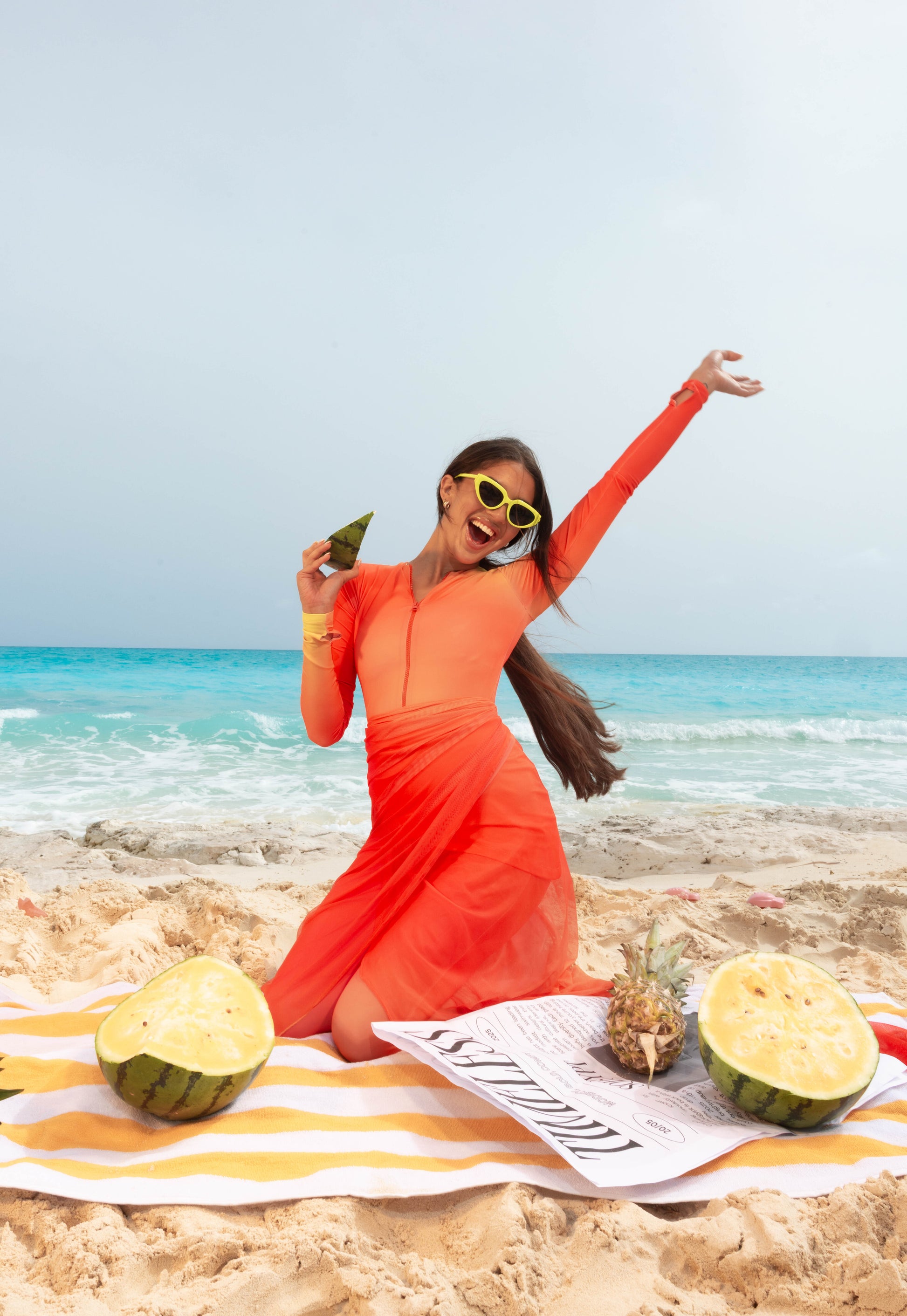 A bold, full-body swimsuit set designed to turn heads. The Sunset Flow Set features a vibrant ombré blend of orange and yellow, inspired by golden hour by the sea. Crafted from stretch, quick-dry fabric, the suit offers a sleek, sculpting fit with full coverage — perfect for swimming or lounging in style.